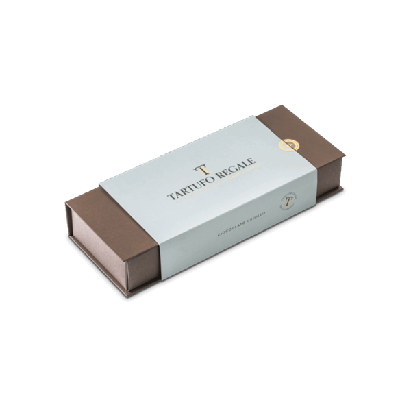 Elegantní dárková krabička, která připomíná zážitek z nákupu drahocenného šperku v klenotnictví. Uvnitř najdete výběr 5ks čokoládových lanýžu různých tvarů se stejnou lahodnou chutí nejvzácnějšího kakaa na světě a lískových oříšků IGP Piemonte, které svědčí o nejvyšší řemeslné kvalitě Tartufo Regale. Každá krabička je ručně podepsána michelinským šéfkuchařem Ugo Alciatim.