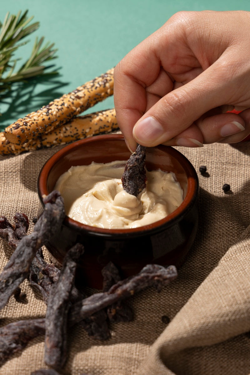 This dried venison meat is characterized by a wild taste with a lightly smoked hint.