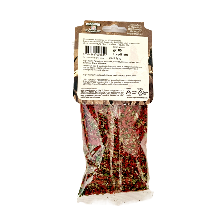 Zutaten: Tomaten, Salz, Thymian, Basilikum, Oregano, Knoblauch, Schnittlauch.